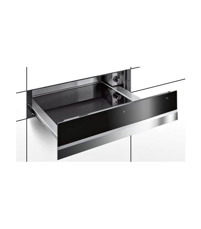 Шкаф для подогрева посуды Bosch BIC630NS — вместительная модель для профессиональной подачи блюд и напитков с режимом поддержания тепла и приготовление опары расширяют функциональные возможности прибора. Телескопические направляющие обеспечивают плавное и легкое выдвижение. Механизм открытия без ручки — это эстетика внешнего вида и дополнительный комфорт использования. Зону нагрева из закаленного стекла удобно очищать от загрязнений.