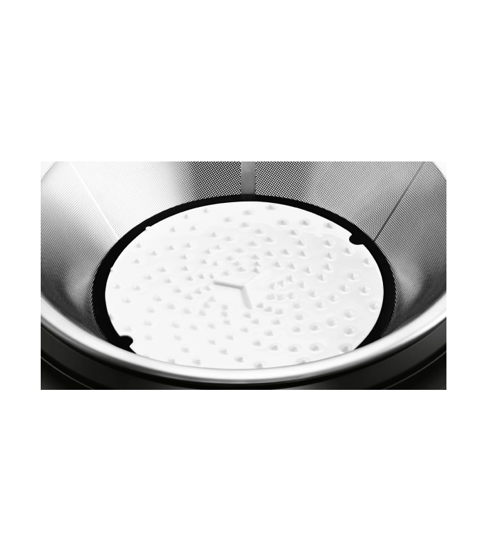 Керамический нож и сито, обработанное методом электрополировки, предотвращают застревание волокон и мякоти, что облегчает очистку после использования.